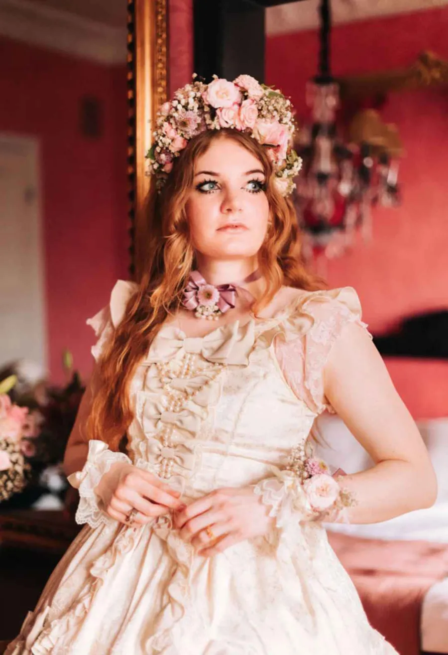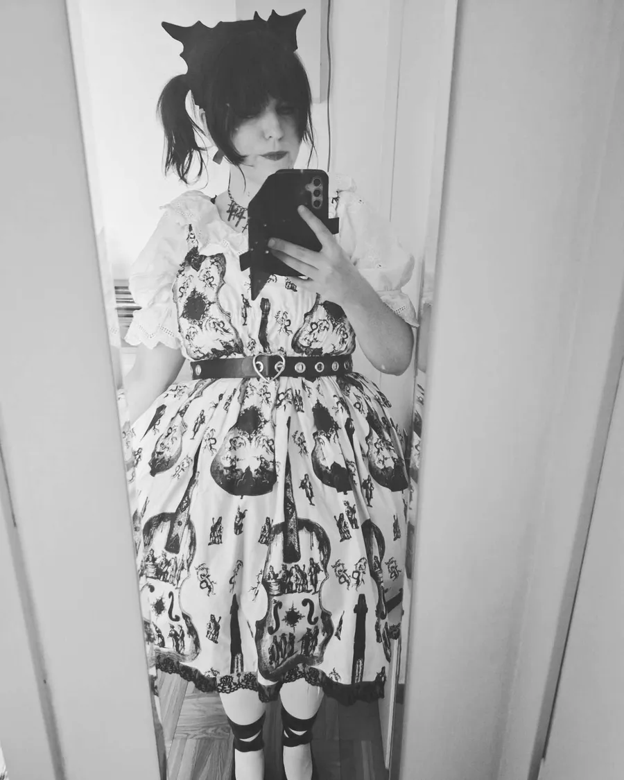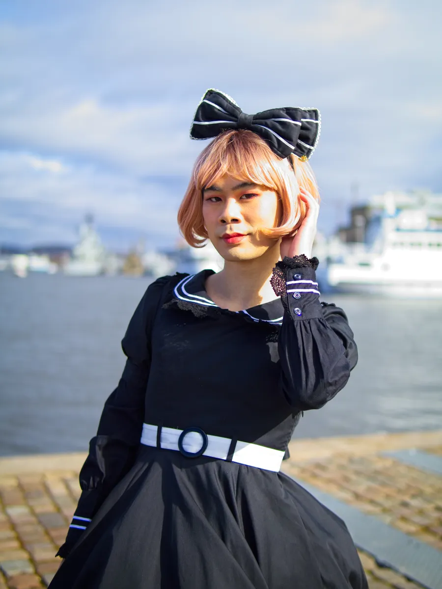 Elis, 32, har närt sitt intresse för J-fashion under 20 år. Favoritstilar är lolita, otome och fairy/pop kei. Med en stor passion för miljö- och social hållbarhet kultiverar den en liten garderob där varje plagg kan få den kärlek den förtjänar. Utanför J-fashioncommunitien kan du ibland se den på scen eller som volontär på queerklubbar.