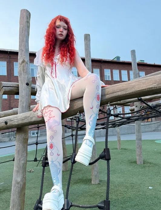 Lina har alltid gillat att testa olika stilar, men det var i Japan hon verkligen hittade sin grej – en blandning av skira lager, spets, pasteller och vintage nattlinnen, gärna ihop med stickat eller klumpiga skor. Hon inspireras av japanska designers som Keisuke Kanda, Mikio Sakabe, Jenny Fax, HeiHei och Rurumu – alla med en stil som blandar det söta med det lite udda och starka.